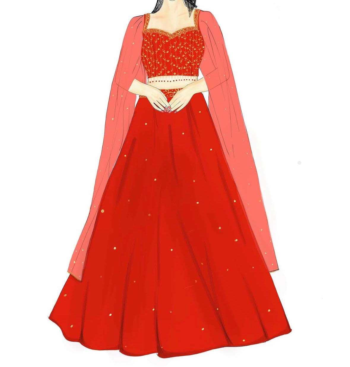 Classic red lehanga bridal couture.A timeless crimson bridal couture tailored to your story. Hand-embroidered with zari and sequins, this lehenga is personalized to your fit,and bridal vision