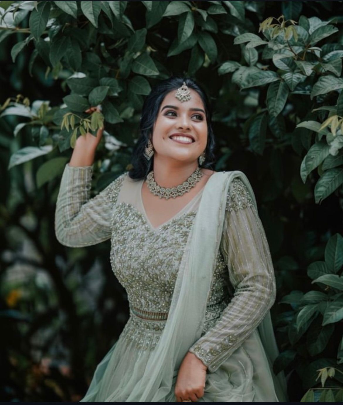 Pista Green Silk Lehenga: Luminous, gravity-defying silk with shimmering Zari code. Your avatar’s perfect heirloom for virtual festive events